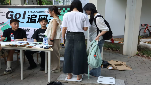 活动当天,体育部各部员分工明确,通过展示活动海报、发放活动宣传册等方式,向过往学生详细介绍活动内容与流程。现场专门设置了智能体脂秤,为报名参与的学生提供免费体重和体脂测量服务,帮助大家了解自身身体状况。参与学生在工作人员引导下,认真签署活动协议,并在签名墙上郑重写下自己的名字,表达对此次健康蜕变计划的期待与决心。